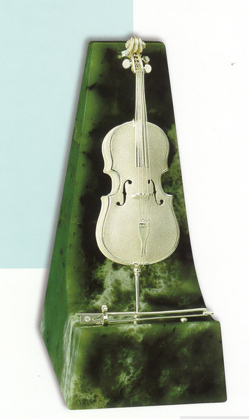 Сувенир "Виолончель". Серебро, нефрит.