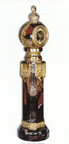 Часы "850 ЛЕТ МОСКВЕ". Орская яшма, бронза, фианиты, аметисты нат.