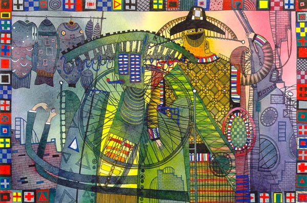 Two fishermen. 1996. P.,   mixed technique 30*40.