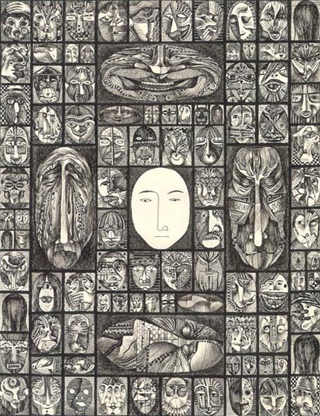 из серии "Миниатюры с масками". 7х9, 1989, т.,п.,б.