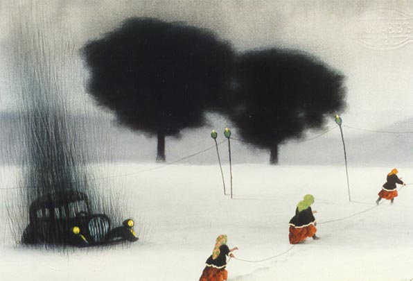 | | | "Three maidens in a snow field". 1996. 51*75. Mixed technique. Sazhayev Family property. | |