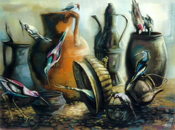 Натюрморт с птицами. Б. Пастель