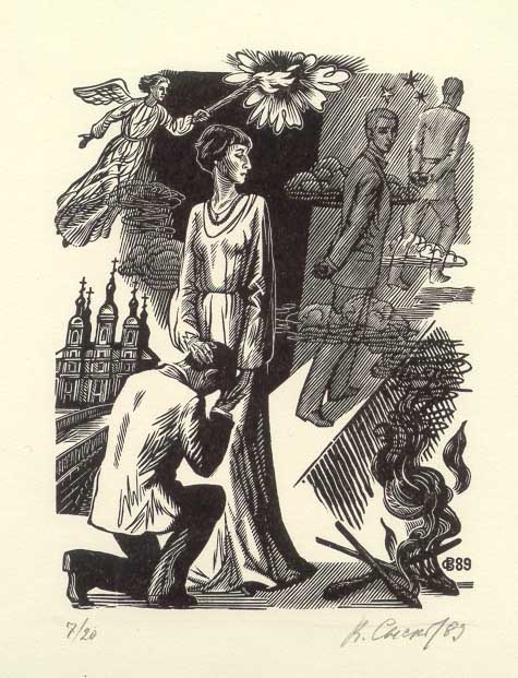 Серия: "Поэты серебряного века", Марина Цветаева, илл. 84*64, ксилография 1989