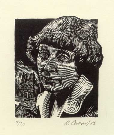 Серия: "Поэты серебряного века", Марина Цветаева, портрет 54*46, ксилография 1989