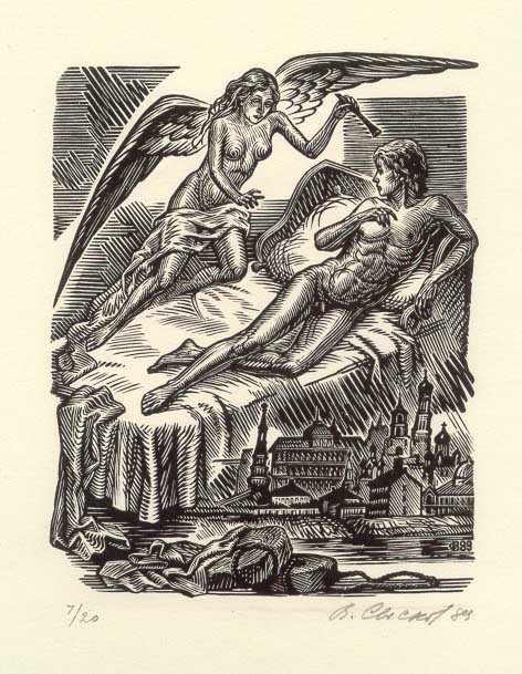 Серия: "Поэты серебряного века", Осип Мандельштам, илл. 84*64,  ксилография 1989