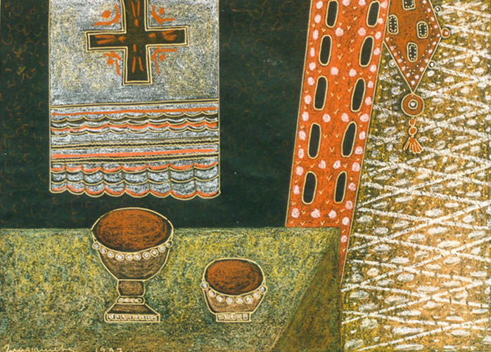 | | | Из серии "Трапеза" ч.б. пастель 30х40 1997г. | |