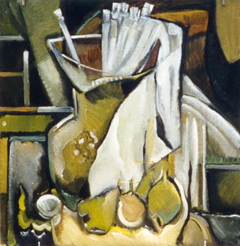 "Натюрморт с красным тазом" 65х65 х.м. 1994г. В частной коллекции.
